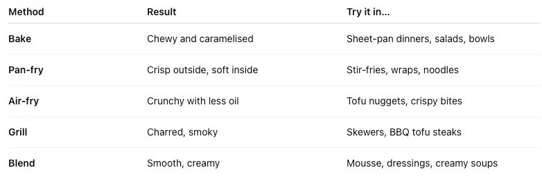 🧪 Frozen tofu is ideal for soaking up sauces and bold flavours in stews or braises.