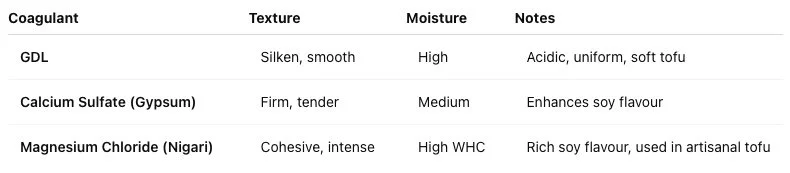 Transglutaminase (meat glue) can cross-link soy proteins and strengthen tofu’s structure. It’s not yet mainstream, but it’s scientifically validated for professional texturisation.